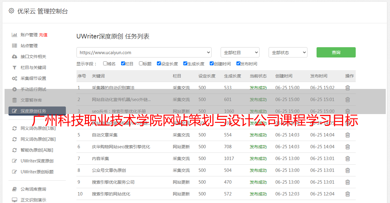 广州科技职业技术学院网站策划与设计公司课程学习目标