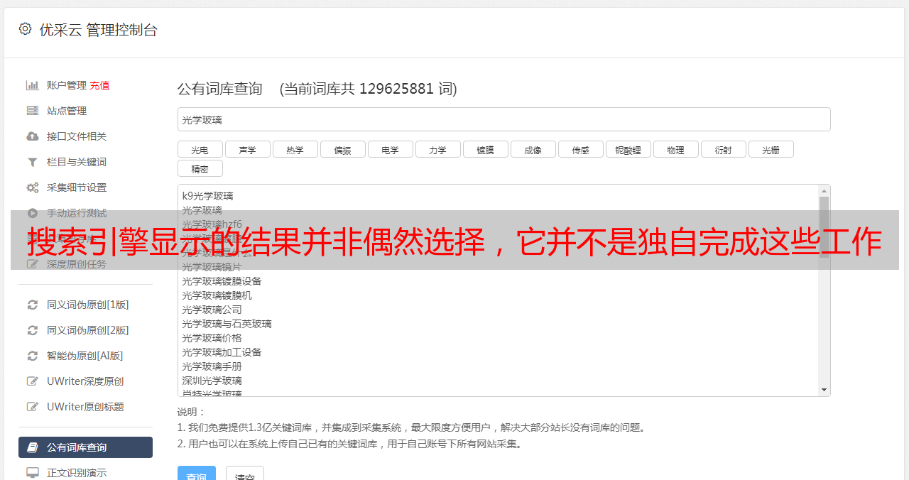 优采云 发布时间: 2021-07-19 19:27搜索引擎显示的结果并非偶然选择,它并不是独自完成这些工作