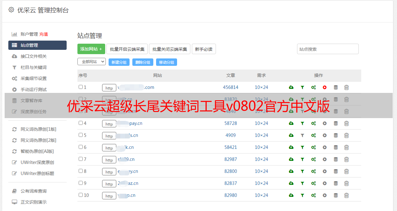 优采云超级长尾关键词工具是一款功能强悍的长尾关键词挖掘工具,采集长尾词的速率很快,每分钟可以采集2000多个,关键词匹配度高,速度快,还能手动转换成关键词缆绳格式,用于发外链特别的便捷。适用于SEO和外贸行业用户。对该软件感兴趣的朋友们,不妨到下载之家网站免费下载优采云超级长尾关键词工具进行体验。
