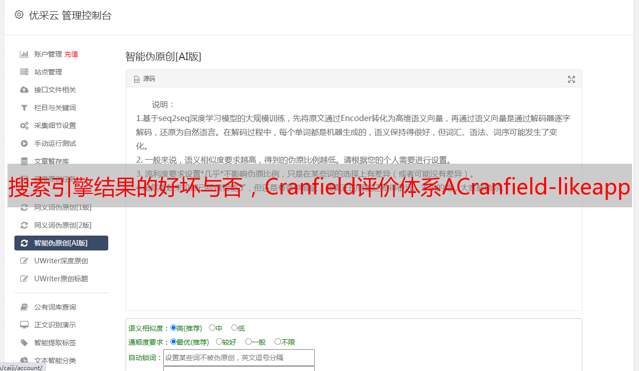 优采云 发布时间: 2021-07-20 02:09搜索引擎结果的好坏与否,Cranfield评价体系ACranfield-likeapproach