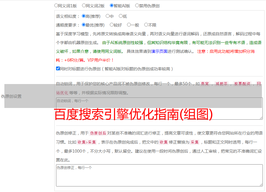 对应的逻辑是按照规范设置的,所以请尽量参考http协议中返回码含义的定义来设置百度蜘蛛对常用的http返回码的处理逻辑是这样的a 404404 返回码 意思是NOTFOUND百度会认为该网页无效,所以通常会从搜索结果中删除,蜘蛛会在短期内再次找到该网址,不会抓取503503返回码。意思是ServiceUnavailable百度会认为网页暂时无法访问,通常网站暂时关闭有限带宽等都会造成这种情况。对于返回503的网页,百度蜘蛛不会直接删除这个url,短期内还会再次访问。如果网页已经恢复,就可以正常抓取了。如果继续返回503,短期内会重复访问几次。但是如果网页长时间返回503,那么这个url还是会被百度认为是失效链接,从搜索结果中删除。 17 百度SEO指南18403403 返回码的含义是Forbidden 百度会认为该网页当前被禁止。如果是新发现百度蜘蛛的url暂时不会爬取,短期内会再查。如果是百度目前有收录url,则不会直接删除。它将在短期内再次访问。如果允许访问该网页,则将正常抓取该网页。如果短期内还是不允许访问,会被多次访问,但如果网页长时间返回403,百度也会认为是失效链接。从搜索结果中删除 301301 返回码。返回码的意思是MovedPermanently 百度会认为当前网页被重定向到了一个新的url。建议使用301返回码,尽量减少改版带来的流量损失。虽然百度蜘蛛现在对301跳转的响应周期很长,但我们还是建议你这样做。我们建议如果网站暂时关闭无法打开网页,请不要立即返回。 404推荐使用503状态。 503可以通知百度蜘蛛页面暂时不可用。请稍后再试。如果百度蜘蛛爬你的网站压力太大,请尽量不要使用404。也建议返回503,这样百度蜘蛛就会超时。让我们再次尝试获取此链接。如果该站点当时处于空闲状态,它将被成功抢占。还有一些网站希望百度只收录部分内容,比如审核内容积累一段时间后的新用户页面等,建议新发布的内容暂时返回403或者其他返回代码进行审核或处理,然后返回正常状态。网站迁移或更换域名时,请使用301搜索引擎返回码网站建好序列覆盖网页主要内容的标题网页标题用于告诉用户和搜索引擎主要内容是什么这个网页是。搜索引擎在判断网页内容的权重时,标题是主要的参考信息之一。网页标题是网页主要内容的概述。包括搜索引擎可以通过网页的标题快速确定网页的主题。每个网页的内容都不一样。每个网页都应该有一个唯一的标题。我们建议通常网页标题可以这样描述主页网站名或网站名_提供服务介绍或产品介绍频道页面频道名称_网站名文章页文章title_频道名称_网站名title指的是html文档中的title标签,而不是下面形式的文章的title,建议放在html文档的head标签中。每个页面都应该有一个唯一的标题。不要为所有页面使用默认标题。标题必须清楚地收录页面最重要的内容。简洁明了。不要列出与页面内容无关的信息。用户浏览通常是从左到右。重要的内容应该放在标题的第一位。使用用户熟悉的语言。如果你有中文和英文网站名,尽量使用用户知道的作为标题。说明 19 百度搜索引擎优化指南 好的内容建设 20网站内容建设主要是基于service网站核心价值提供给搜索引擎收录也应该有助于他们的核心价值。内容构建要符合网站的主题,比如你的网站是一个it news网站,不要放一堆漂亮的图片。除了浪费服务器资源,对网站的核心价值没有任何帮助。看美图的人是不对的。它的新闻对某个sns网站注册用户感兴趣是其最重要的资源,它主要依靠吸引新的注册用户。搜索引擎中的姓名搜索是潜在新用户的重要来源。他们提供给搜索引擎收录注册用户名资源,可以引导搜索引擎用户转化为注册用户。 网站的内容应该是面向用户的搜索引擎。只是网站的普通访客。提供满足用户需求的原创内容,写好主播很重要。文本锚文本是指制作链接时使用的描述性文本。它用于告诉用户该链接已链接到网页的主题。锚文本描述越清晰,用户越容易理解指向网页的内容。这个链接的描述是否让用户明白,吸引用户访问是必不可少的。就像普通用户一样,当搜索引擎刚发现一个新网页时,锚文本也是该网页描述的唯一参考因素。给图片添加一个alt。当速度较慢,无法显示图片时,它可以让用户了解图片想要传达的信息,也可以让搜索引擎了解图片的内容。更丰富的内容可以以专题等更丰富的内容组织形式提供给用户,让用户以最低的成本获取所有需要的信息供搜索引擎网站建Web20类型网站应充分利用自身优势,让用户通过投票、评论等方式自行判断资源的好坏。这些质量判断也可能被搜索引擎用来判断。资源的价值 频点的视频质量往往更高。用户可以参考投票信息,降低筛选成本。管理 web20 和其他用户生成的内容产品。如果被骗子利用,可能会影响整个网站的权重,赢得用户对网站的推荐。网上有很多网站提供相同的内容服务。当内容相同时,哪个网站会排在搜索引擎的前面?决定性因素是推荐。我们常说的超链接就是推荐的。当你网站用户上的内容对用户有用时,用户就会以推荐的形式推荐给其他人。 There may be various forms of recommendation. Send it to your friends on the instant messaging tool. Repost recommendation in the forum you often use. Write a blog. Very solemnly introduce yourself 网站