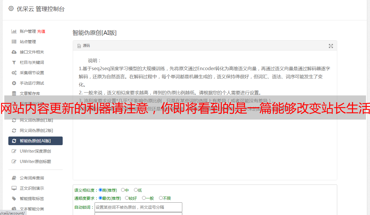 自动版防复制*敏*感*词*——实现无人值守、智能采集、智能组合、自动上传伪原创系统。