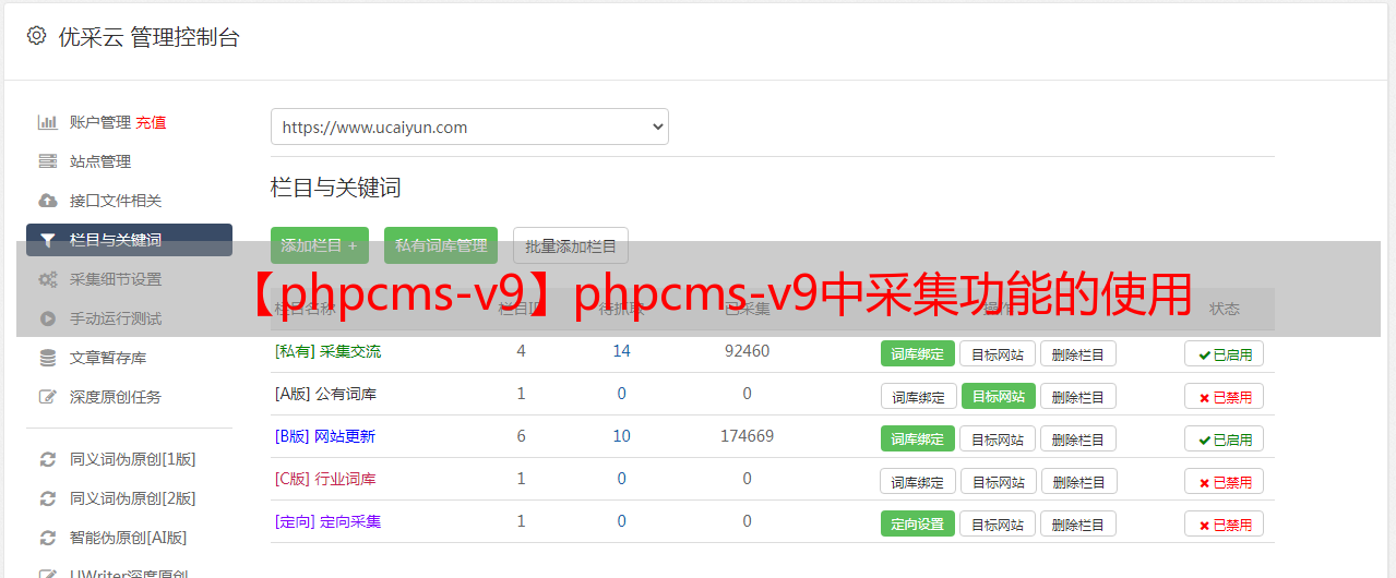 【phpcms-v9】phpcms-v9中采集功能的使用