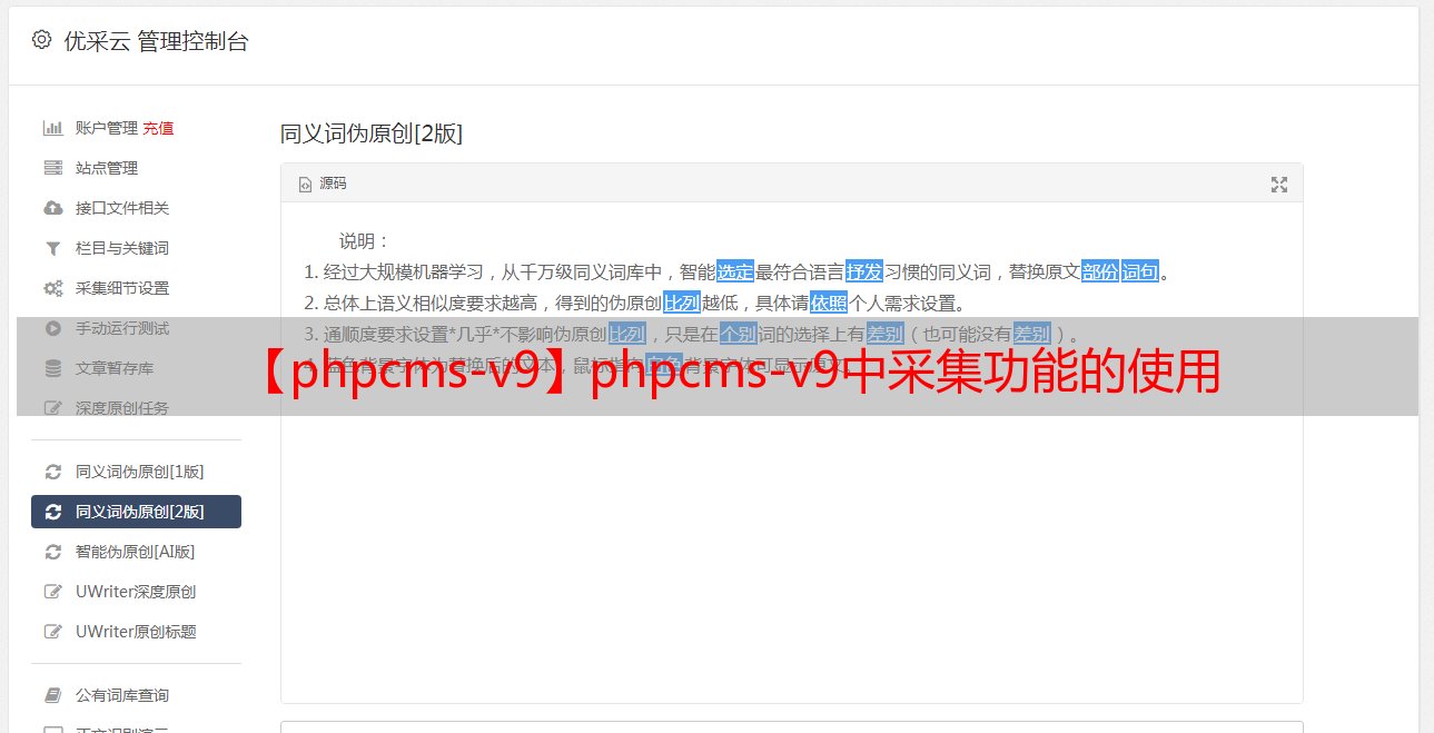优采云 发布时间: 2020-08-10 00:19Phpcms网站管理系统目前最新版本为Phpcms v9,作为国外主流CMS系统之一,目前已有数万网站的应用规模。那么其自带的采集模块功能怎样呢,来瞧瞧吧。