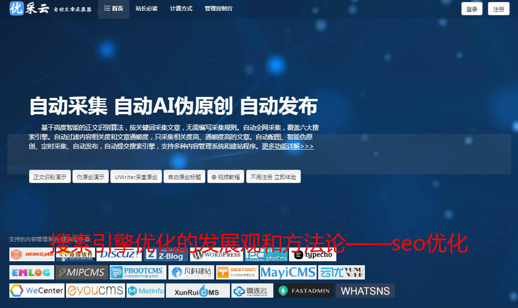 搜索引擎优化(简称seo):指按照搜索引擎的搜索原则合理规划和部署网站结构、网页文本语言、站点间交互策略,以提高网站在搜索引擎的搜索性能增加了客户发现和访问网站的可能性。搜索引擎优化也是一种科学的发展理念和方法论。它随着搜索引擎的发展而发展,也推动了搜索引擎的发展。
