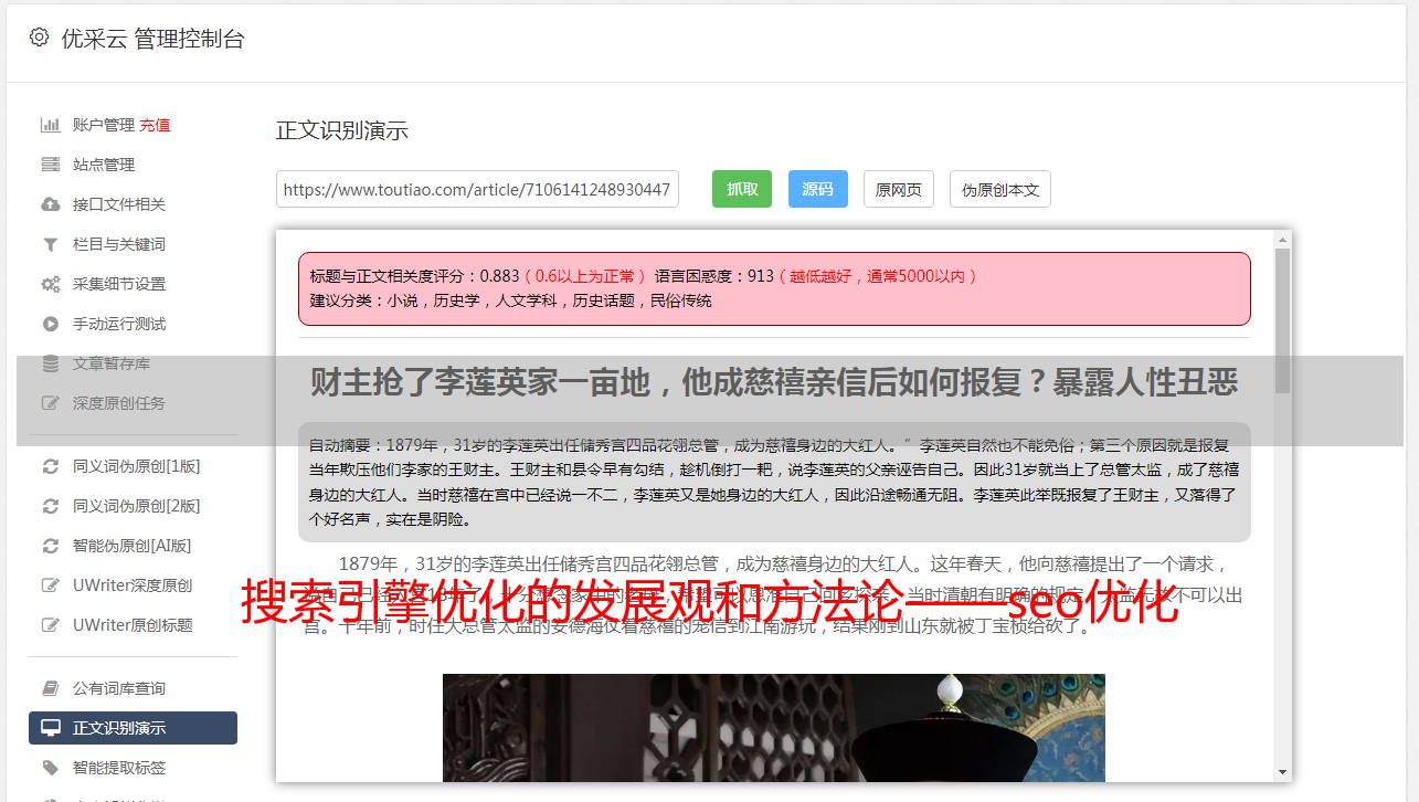 seo优化就是搜索引擎优化,搜索引擎优化就是收录搜索到的网站内容并进行优先排序,以提高网站的点击率和曝光率,最终提高@k14的整合度@ 能力。对于写网站的人来说,内容不仅要通俗易懂,让大多数人都能看懂,还要对搜索引擎友好。这里主要介绍seo优化技巧。