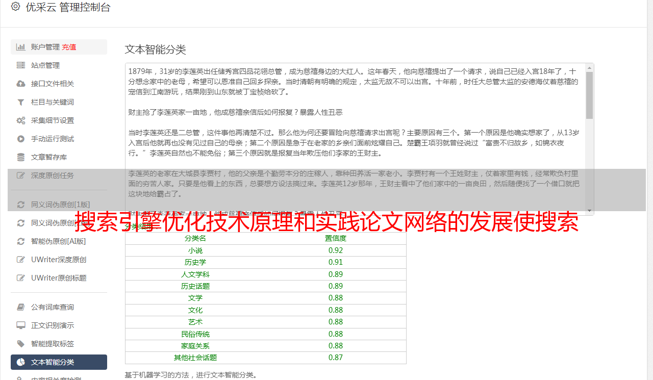 搜索引擎优化技术原理与实践论文网的发展使搜索引擎不断优化网站的建设,从而保证搜索引擎在优化排名目标之前能够更好的收录网站并使用@k14 . @Page,关键字赋值,网站结构体等等,为了最终增加对网站本身的访问量。 1 搜索引擎优化介绍1.1 搜索引擎优化(SEO)技术 搜索引擎优化是一项严格按照搜索规则制定特定搜索策略的技术,旨在帮助网站增加其每日访问量。 SEO可以通过两种方式实现:(1)内部优化,(2)外优化。前者主要是针对@k14对@page的基本元素进行合理调整,让搜索引擎得到更多关注。后者是为了使用外链来推动搜索引擎占据更多的位置,也就是大数定律,所以保证网站访问的机会越来越多。当然,不管用什么SEO,基本目的是为了保证网站自身的访问量有效增加,从而提高网站的宣传能力[1]。1.2搜索引擎优化原理搜索引擎优化的原理主要来源于逆向的工作原理因此,在了解和学习其原理之前,首先要了解常见搜索引擎的基本工作原理,目前搜索引擎主要分为三类:(1)全文搜索,如百度、谷歌;(2)cata日志搜索引擎,国外一般选择目录搜索引擎的原理; (3)meta 搜索引擎,主要使用。