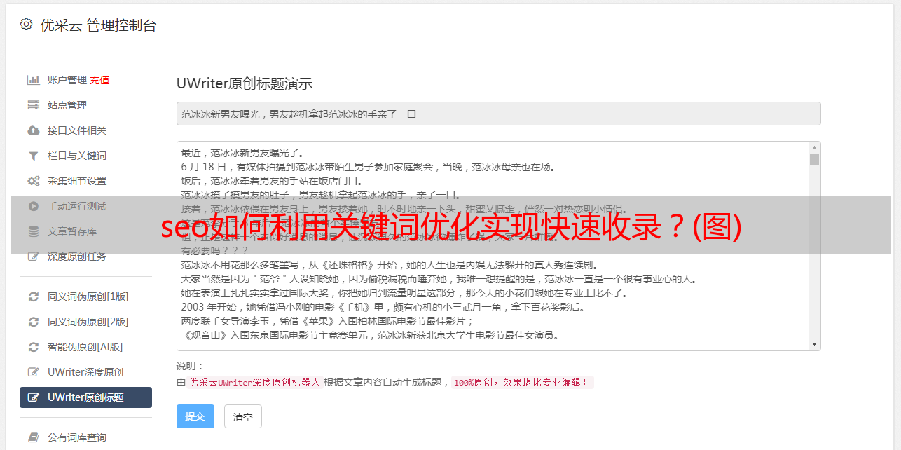 优采云 发布时间: 2021-07-22 07:00seo如何利用关键词优化实现快速收录?(图)