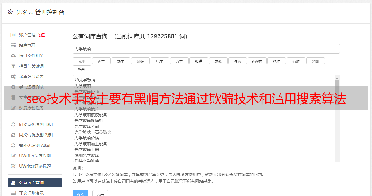 优采云 发布时间: 2021-07-22 07:21seo技术手段主要有黑帽方法通过欺骗技术和滥用搜索算法