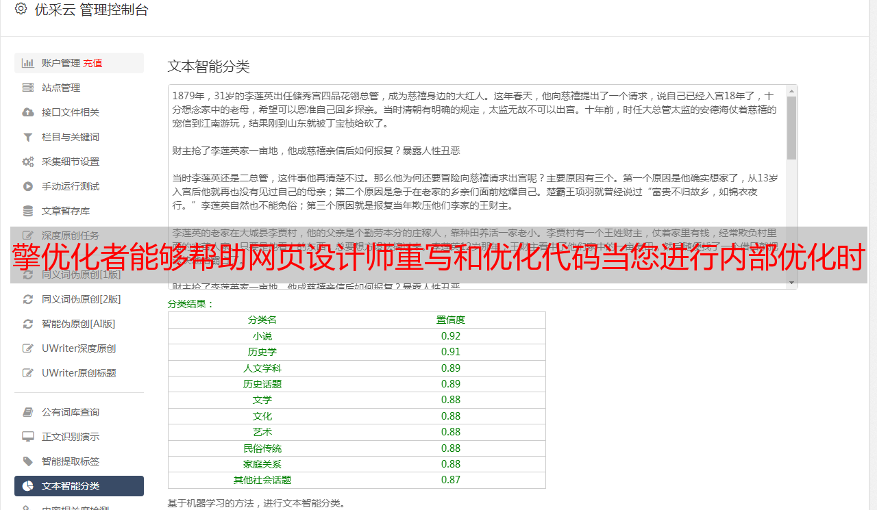 优采云 发布时间: 2021-07-22 19:03擎优化者能够帮助网页设计师重写和优化代码当您进行内部优化时