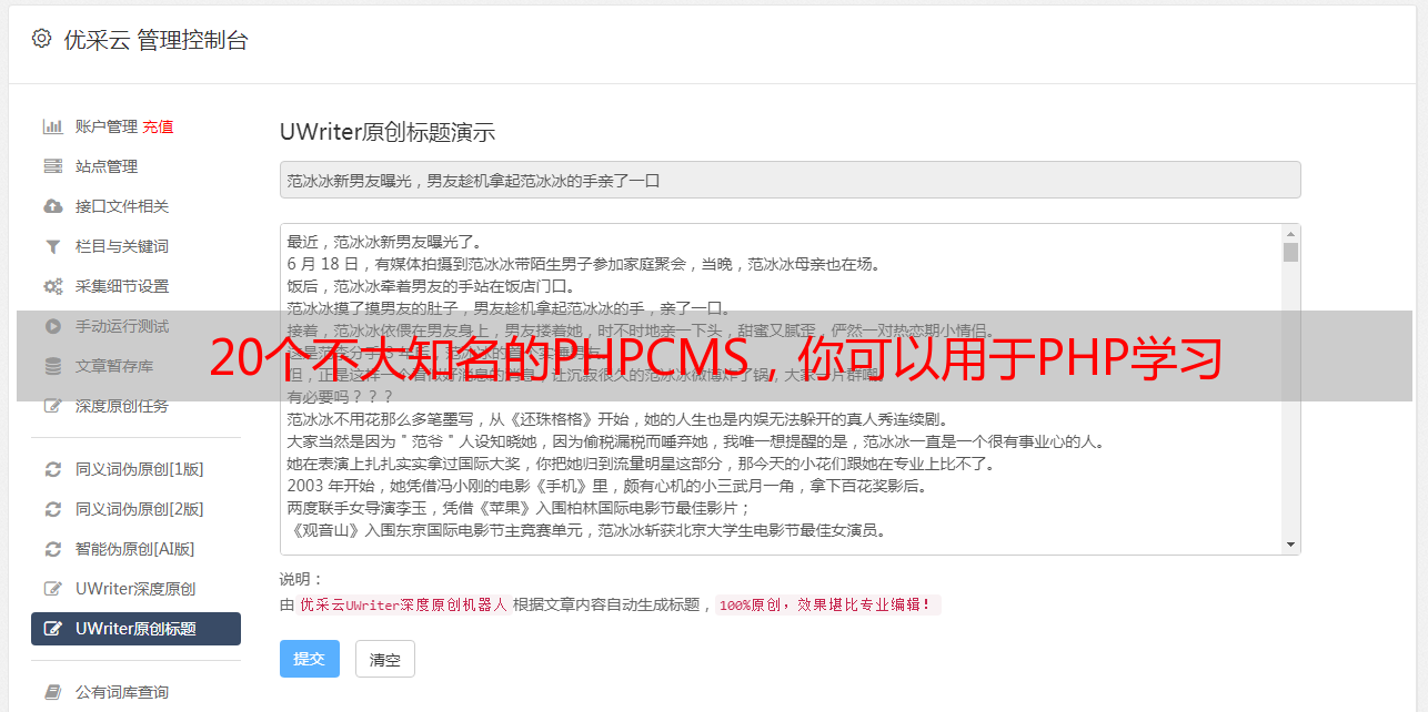 优采云 发布时间: 2021-07-22 20:5020个不大知名的PHPCMS,你可以用于PHP学习