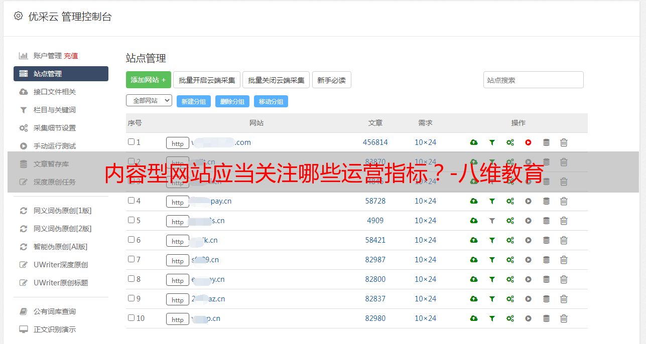 优采云 发布时间: 2021-07-23 21:16内容型网站应当关注哪些运营指标?-八维教育