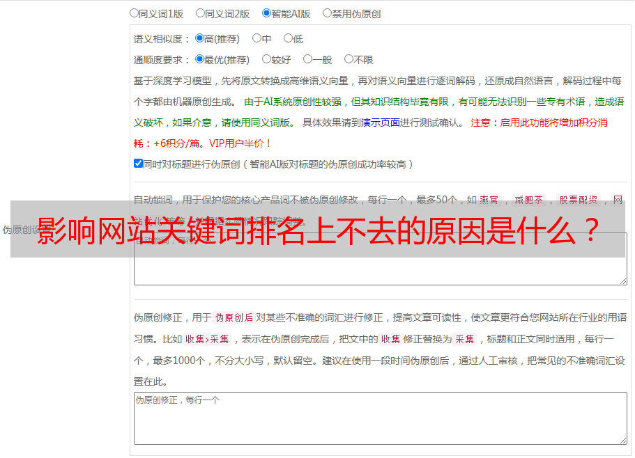关键词密度对关键词排名有重要影响。较高的关键词有利于优化,所以很多站长,为了增加页面关键词的密度,使用关键词stacking方法,只需在图片alt标签中添加关键词,在那里添加关键词文字出现,关键词密度上升,但容易招致搜索引擎惩罚,这种恶意堆砌关键词,典型的过度优化不仅让搜索引擎反感,也让用户反感。