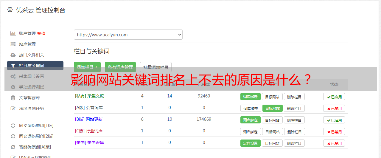 优采云 发布时间: 2021-07-24 01:03影响网站关键词排名上不去的原因是什么?