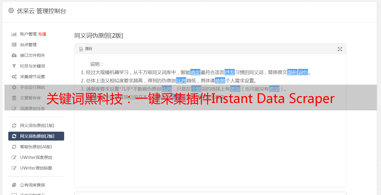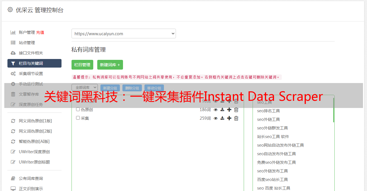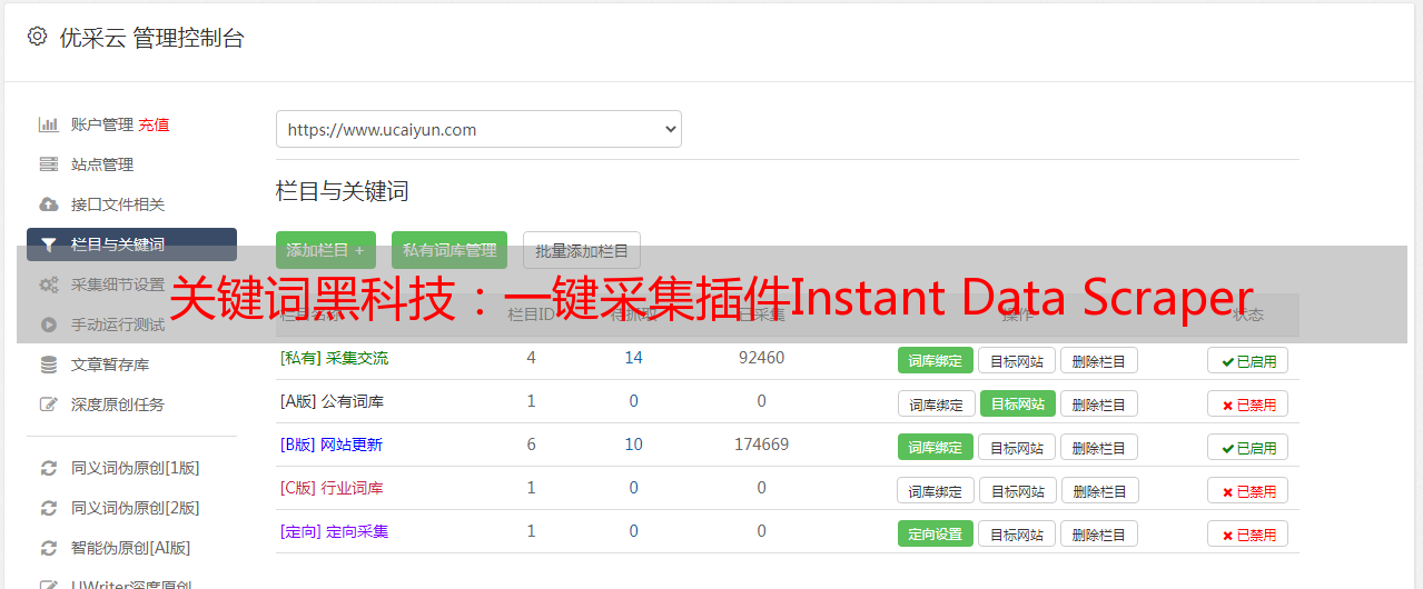 优采云 发布时间: 2020-08-10 10:35在阿里巴巴国际站内有很多搜集关键词的途径,比如关键词指数、引流关键词等,为了便捷用户获取关键词,这些途径都提供关键词一键导入功能。