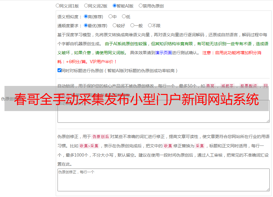 春哥技术团队长达好几个月悉心构建的小型门户新闻全手动采集发布系统,让你轻松创业,人人都能当老总,此套系统解决创业者最大疼点,就是自动更新内容的苦恼,我们此套系统文章自动采集更新系统,采用全网独家技术模拟人工发布技术,没有第二家,我们程序员同志花了大量精力开发的功能。你每晚只需点击开始,全手动采集互联网上优质资源文章,模拟人工手动发布,你没有听错,是模拟人工发布,跟人发布没哪些两样,今天我们即将发布这个神奇的系统!