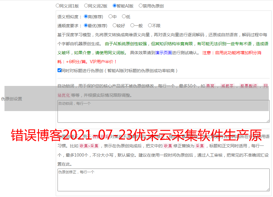 优采云采集software 是一个非常好用的文章采集软件,能产生原创内容吗?是的,但只是质量略低原创。今天错误博客()分享的内容是“优采云采集Build原创文章Three Methods”。希望能帮到你。