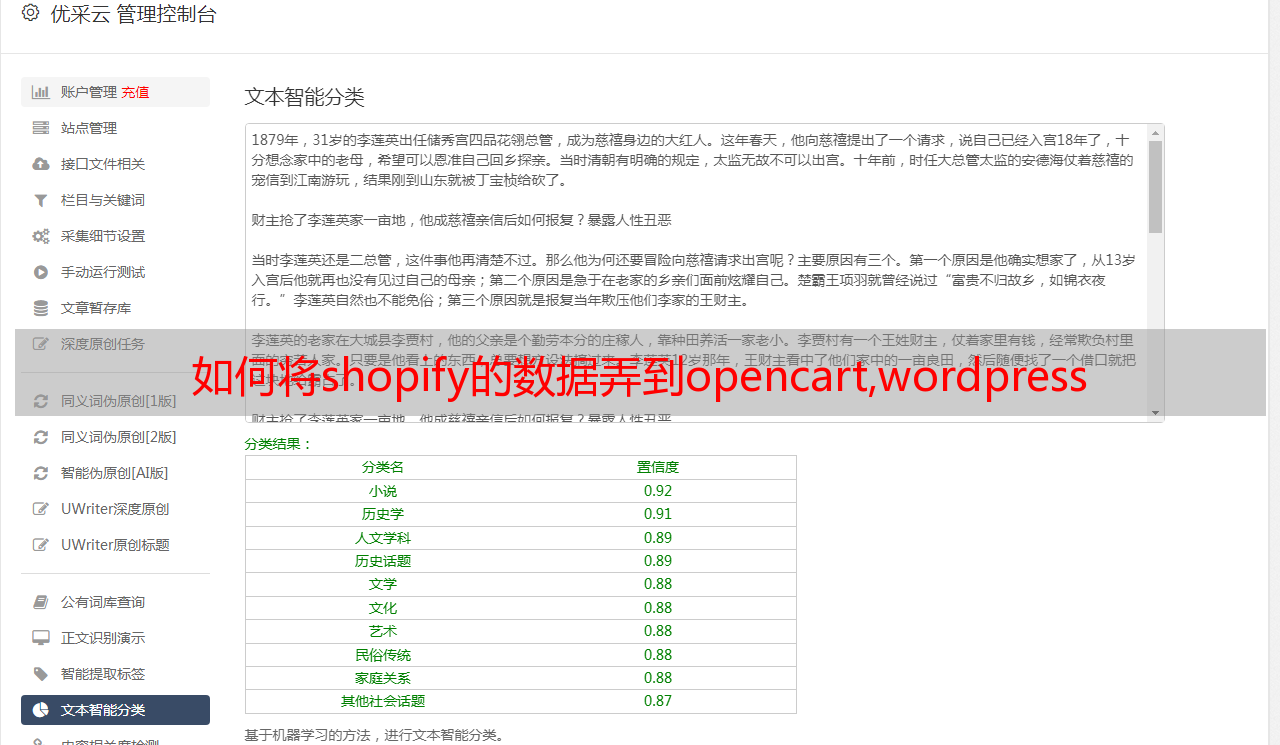 随着越来越多的人使用shopify,shopify的管理越来越严格,不注意网站就会被屏蔽。针对这种情况,很多人已经开始转移其他平台或自建网站程序。其中,使用opencart和wordpress也是选择之一。使用这些自建站程序时出现问题。如何将shopify 数据获取到opencart、wordpress 或直接采集shopify 数据到opencart、wordpress。针对这个问题,我们提供了对接系统。功能介绍如下: