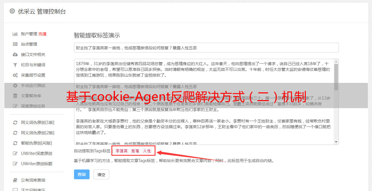 优采云 发布时间: 2021-07-28 22:01基于cookie-Agent反爬解决方式(二)机制