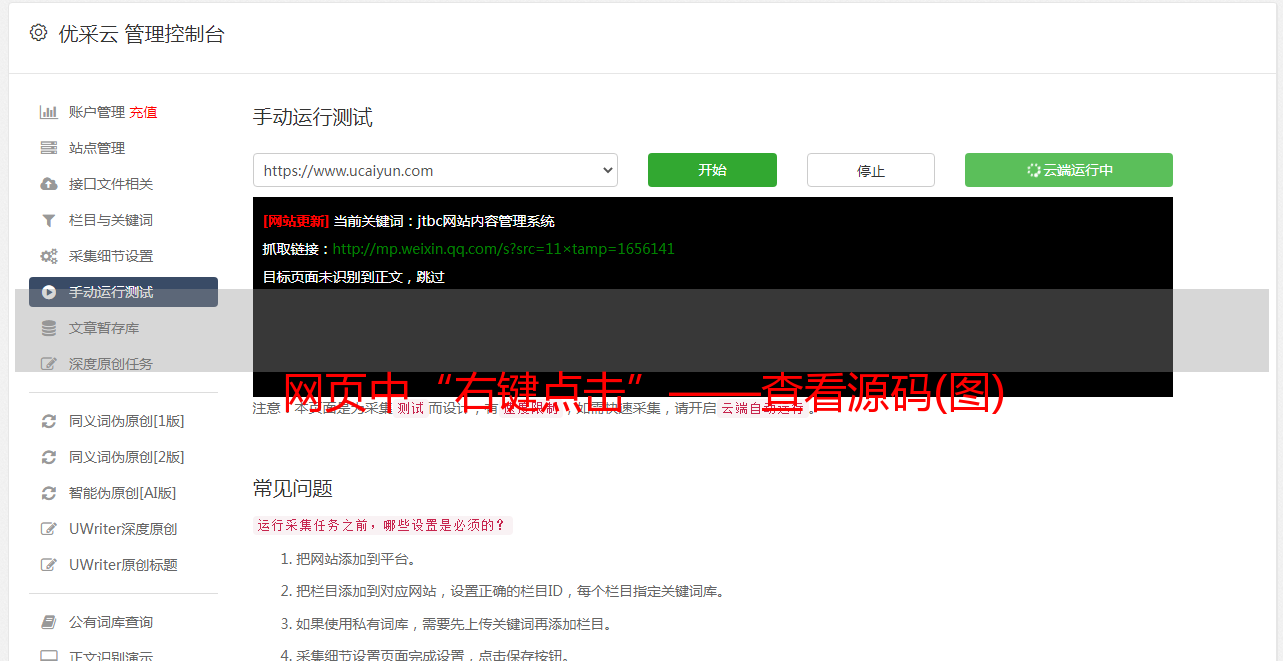 优采云采集器不需要通过URL规则直接进入内容采集,所以可以根据网站的难度决定采集是否选择目标源,而是等URL@之后采集发现网站你不能选或者不值得你浪费时间(之前的时间没用!)。