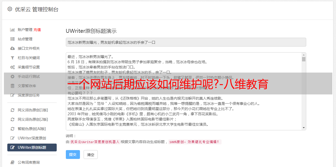 优采云 发布时间: 2021-07-30 21:01一个网站后期应该如何维护呢?-八维教育