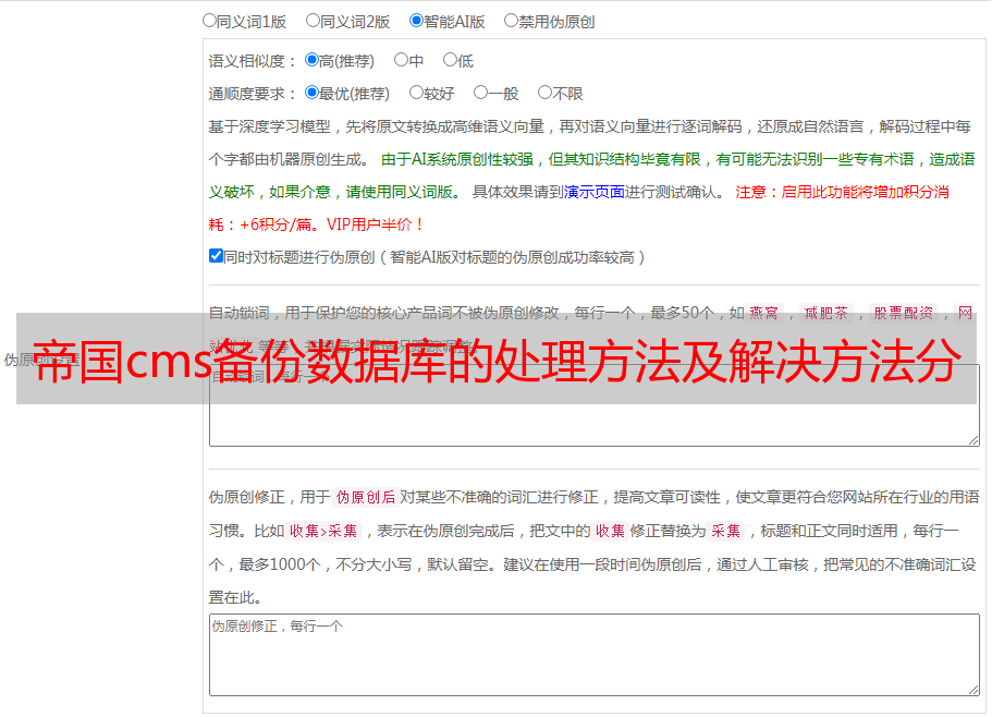 优采云 发布时间: 2021-07-30 23:22帝国cms备份数据库的处理方法及解决方法分享!