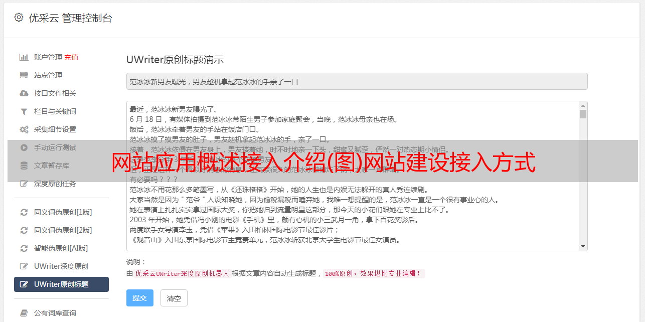 优采云 发布时间: 2021-07-31 06:24网站应用概述接入介绍(图)网站建设接入方式