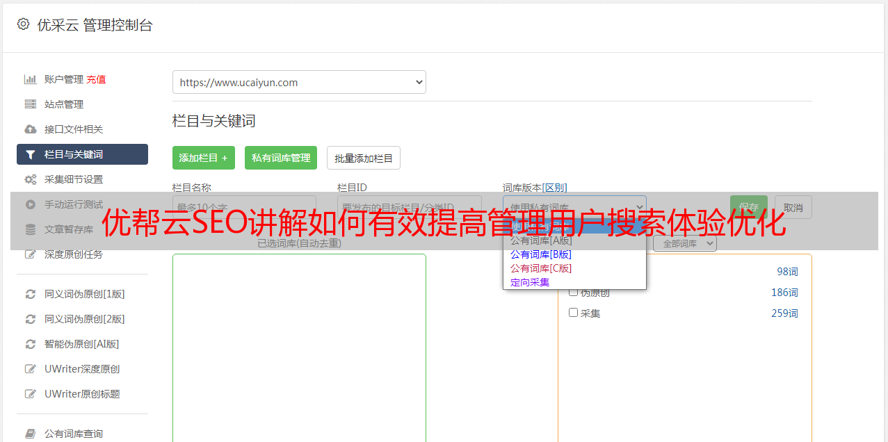 优采云 发布时间: 2021-07-31 06:24优帮云SEO讲解如何有效提高管理用户搜索体验优化