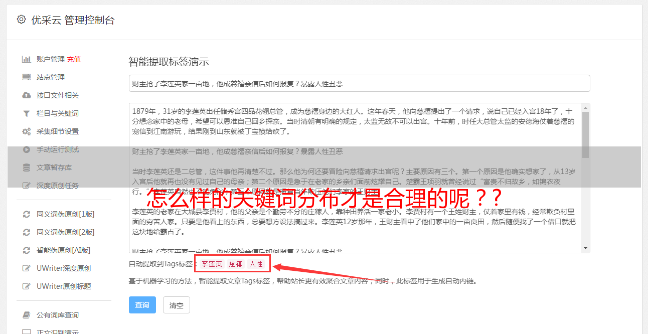 关键词固然重要,但是站长应该明白,seo不仅仅是给网站设置一个固定的关键词来做排名,而是越多越好的获得好排名的关键。这是长尾理论的一个更好的运用,从长尾关键词来看,不仅体现了网站制定关键词的数量,还体现了网站的整体相关性,从站长工具可以看出谷歌提供可以发现,搜索引擎对网站的整体关键词进行了分类。根据网站关键词的分类统计,搜索引擎基本上会对网站有更明确的定位,在关键词排名中也会给予一定的权重。