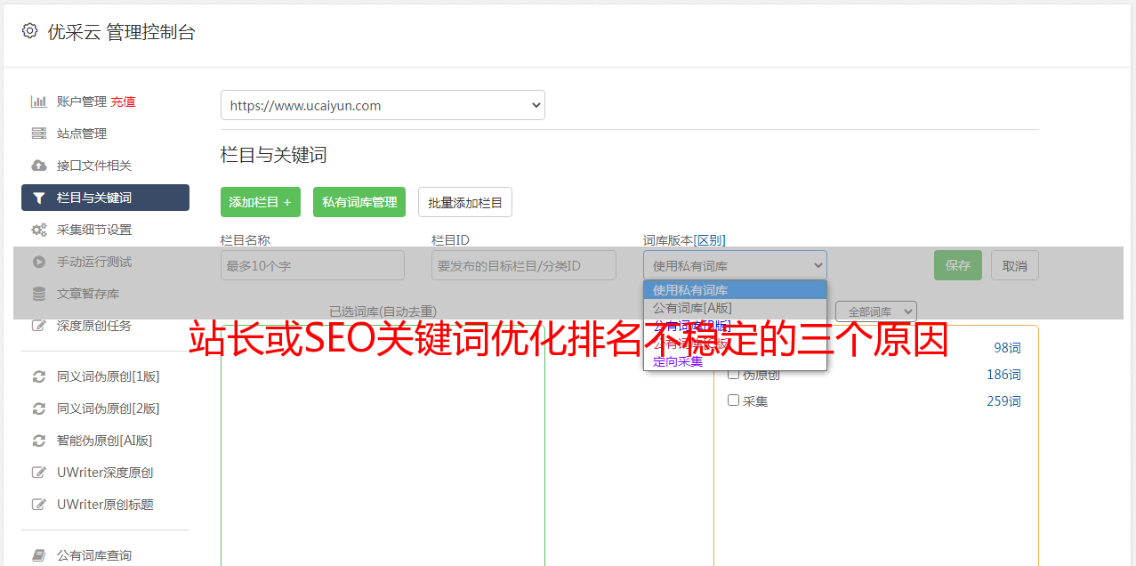 很多站长和朋友耗费大量的时间和人力成本。 网站关键词优化排名,使排名达到理想状态,但是发现网站关键词optimize排名不稳定,上下,飘忽不定。针对这种情况,建议站长或者SEO关键词优化器分析排名不稳定的原因,提出可执行的解决方案,彻底解决不稳定问题。这里列举了网站关键词不稳定的三个常见原因,并列出了相应的解决方法。剩下的三点会在下一篇文章中写到。全文如下:
