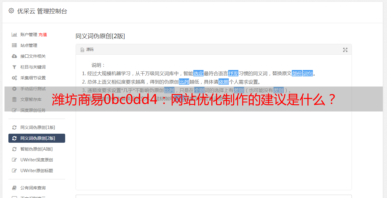 潍坊商易0bc0dd4:网站优化制作的建议是什么?
