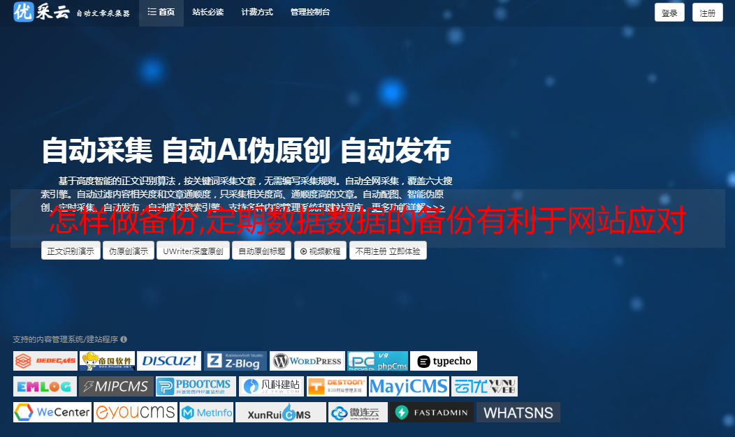 优采云 发布时间: 2021-08-01 02:25怎样做备份,定期数据数据的备份有利于网站应对