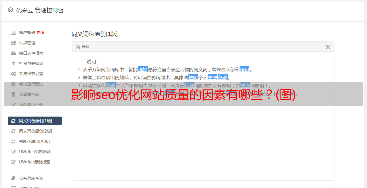 优采云 发布时间: 2021-08-01 23:00影响seo优化网站质量的因素有哪些?(图)