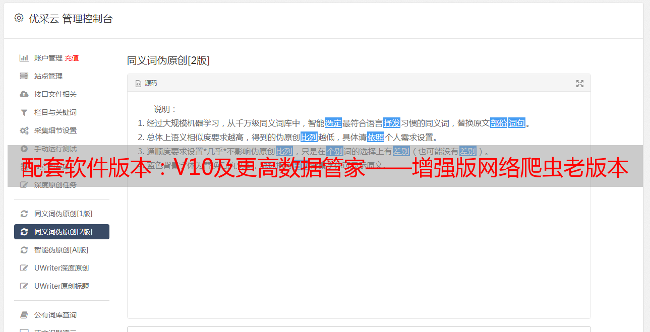 配套软件版本:V10及更高数据管家——增强版网络爬虫老版本对应教程
