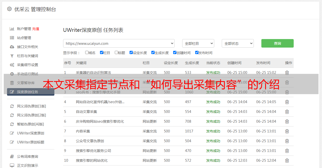 优采云 发布时间: 2021-08-02 23:15本文采集指定节点和“如何导出采集内容”的介绍