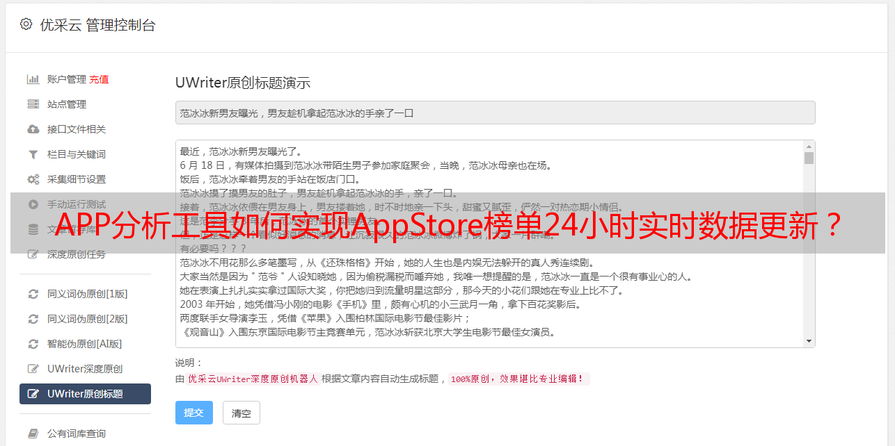 优采云 发布时间: 2021-08-03 05:12APP分析工具如何实现AppStore榜单24小时实时数据更新?