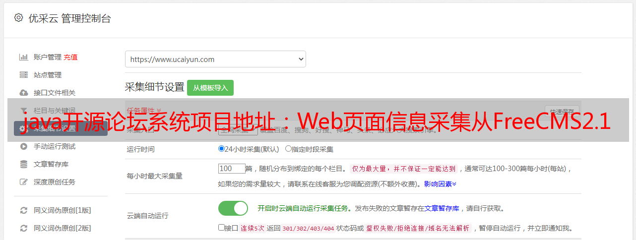 优采云 发布时间: 2021-08-03 19:04java开源论坛系统项目地址:Web页面信息采集从FreeCMS2.1