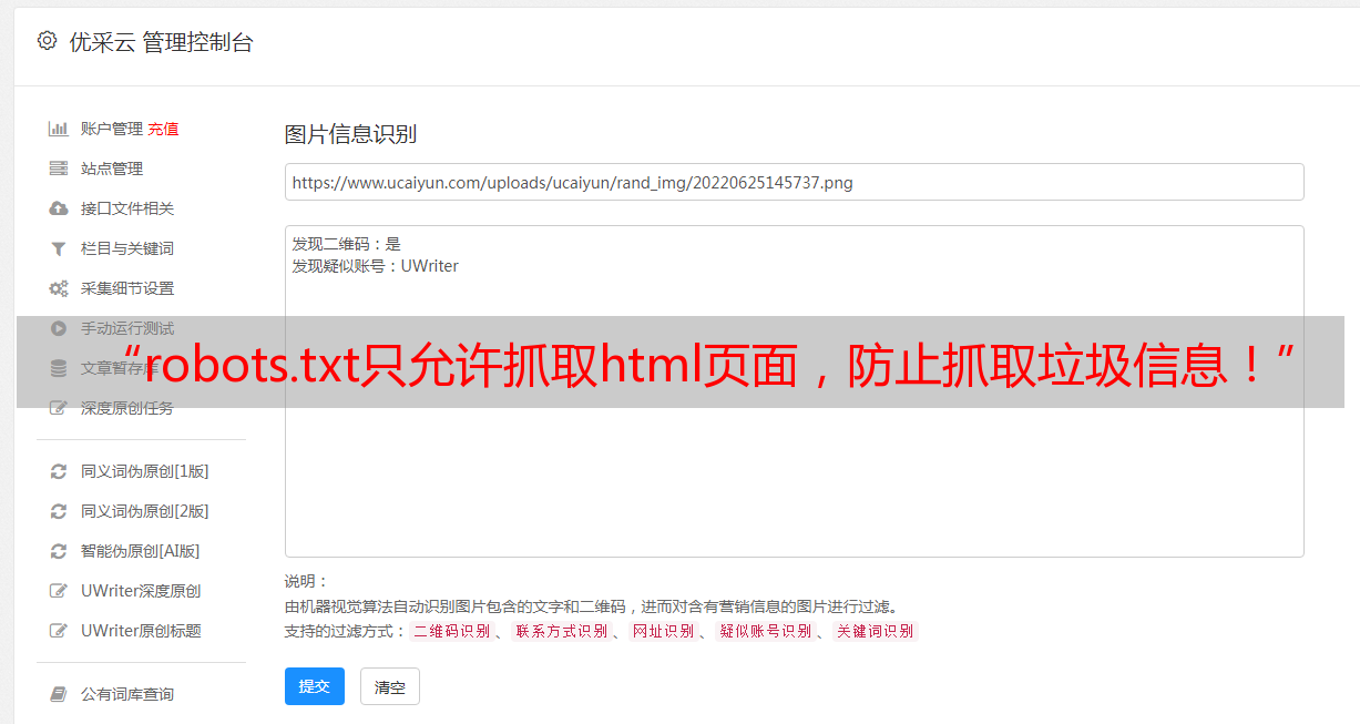 “robots.txt只允许抓取html页面,防止抓取垃圾信息!”