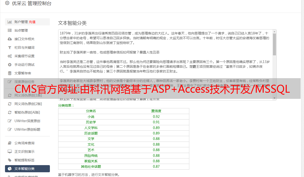 优采云 发布时间: 2021-08-04 03:16CMS官方网址:由科汛网络基于ASP+Access技术开发/MSSQL技术开发