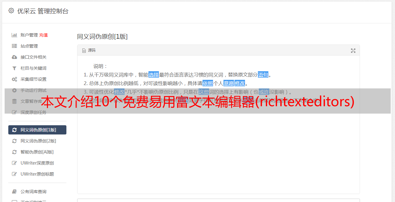 优采云 发布时间: 2021-08-04 20:20本文介绍10个免费易用富文本编辑器(richtexteditors)