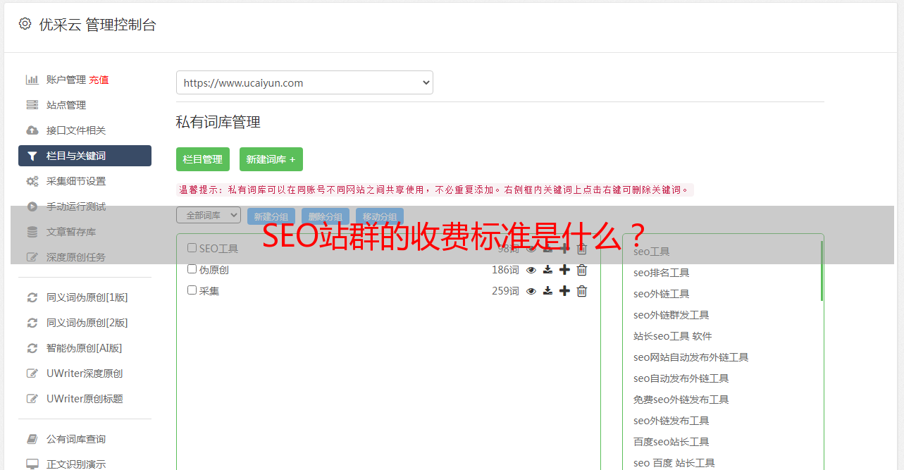 优采云 发布时间: 2021-08-05 18:24SEO站群的收费标准是什么?