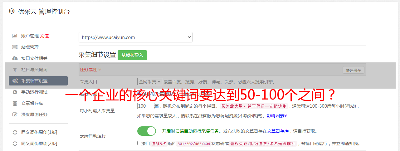 将扩展的***核心关键词分配给网站main导航的每一列。 网站的一个主导航一般有10列,每列分配3-5个关键词,所以消耗了50个关键词。剩下的词放在网站的二级列表页,或者三级详情页。每个页面使用1个关键词,这个关键词必须是长尾关键词。这是网站的结构优化。在网站结构优化过程中加入品牌词,完成网站品牌词优化。