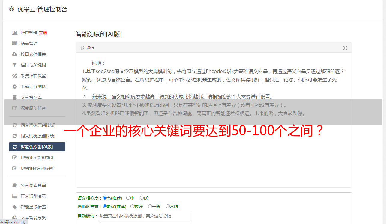 将扩展的***核心关键词分配给网站main导航的每一列。 网站的一个主导航一般有10列,每列分配3-5个关键词,所以消耗了50个关键词。剩下的词放在网站的二级列表页,或者三级详情页。每个页面使用1个关键词,这个关键词必须是长尾关键词。这是网站的结构优化。在网站结构优化过程中加入品牌词,完成网站品牌词优化。