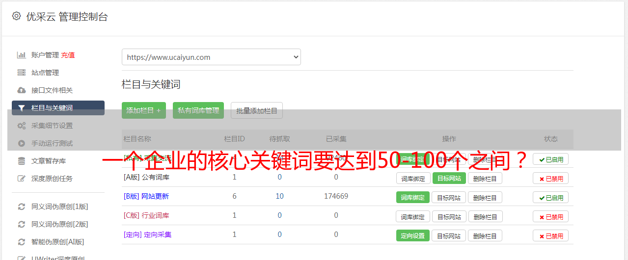 一个企业的核心关键词要达到50-100个之间?