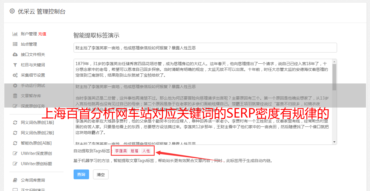 上海百首分析网车站对应关键词的SERP密度有规律的