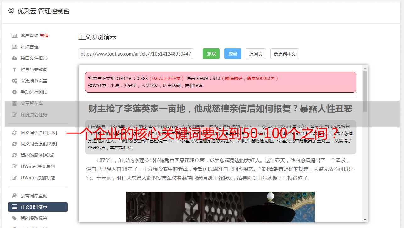 当文章都被收录收录在百度和360、搜狗首页上,是否证明SEO做得好?不确定!因为这些已经贴在首页的文章s可能没有任何的销售能力,访问者打开网页后会直接跳开,根本不会进行任何查询或交易。所以一定要清楚,写文章,一方面要满足搜索引擎,满足seo标准;另一方面,它必须是写给访问者的,必须有销售人员。