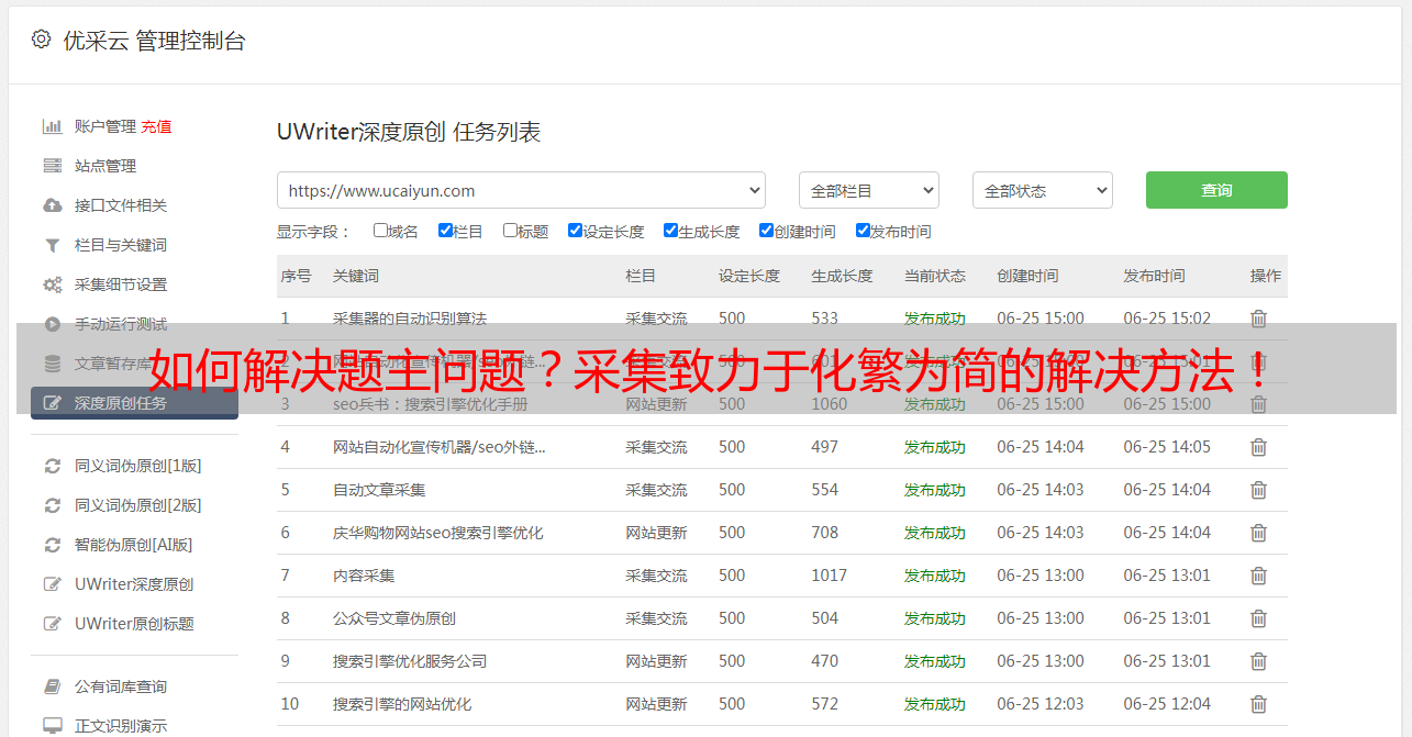 优采云 发布时间: 2021-08-07 02:04如何解决题主问题?采集致力于化繁为简的解决方法!