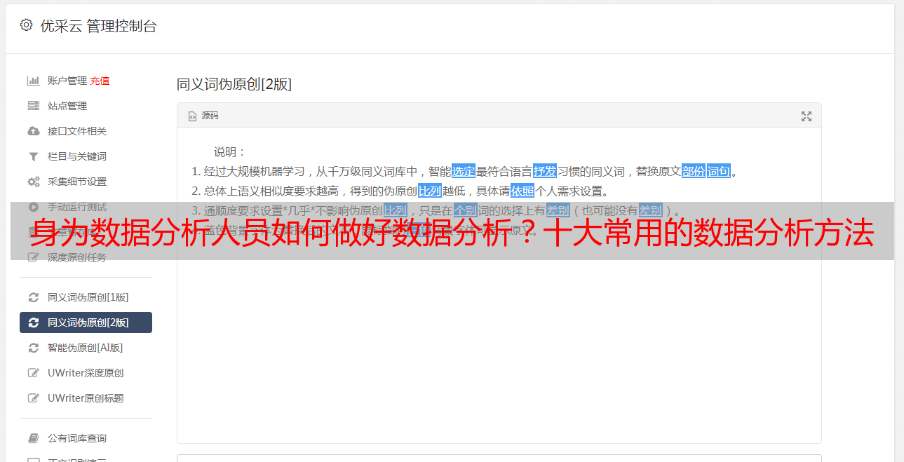 优采云 发布时间: 2021-08-08 00:37身为数据分析人员如何做好数据分析?十大常用的数据分析方法
