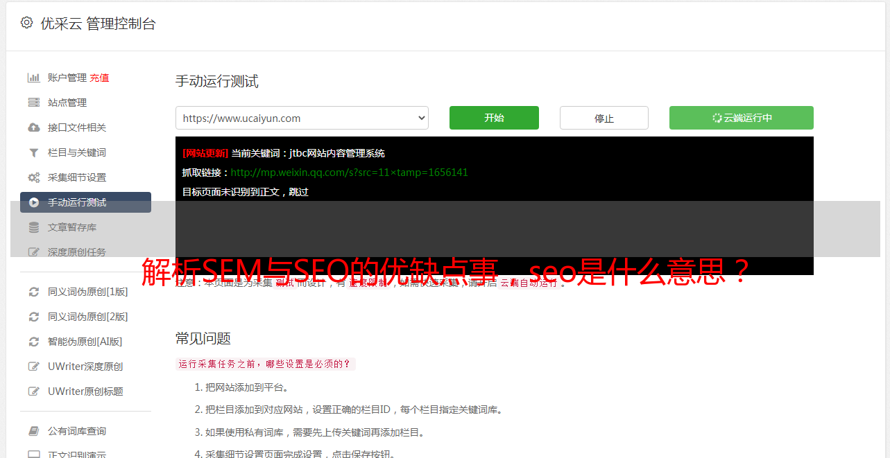 我使用了搜外6 系统。我对此知之甚少。关于seo设置,应该是网站的基本优化。 1、做301定位,跳转到2、site链接查看,去索引3、食品面包屑导航优化4、做robots.txt文件也可以放网站Mapsitemap 5、绑定熊掌号,做主动推送,做好手机网站6、