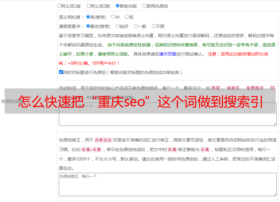 怎么快速把“重庆seo”这个词做到搜索引擎首页排名?